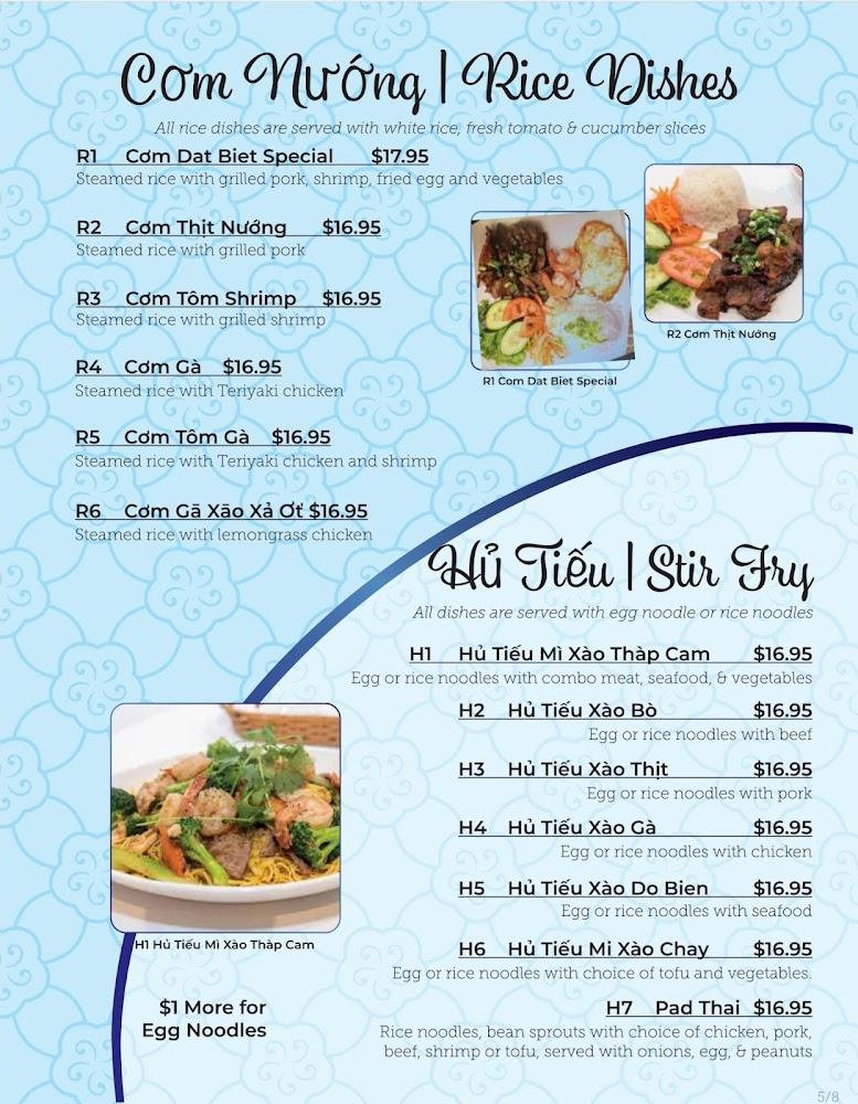 For those who enjoy rice, options like grilled pork, shrimp, and chicken dishes provide satisfying meals. The vermicelli offers a fresh twist with grilled meats and veggies. Vietnamese coffee and refreshing smoothies round out the drink selection perfectly. Whether seeking a quick lunch or a leisurely dinner, the diverse menu ensures every diner leaves happy.